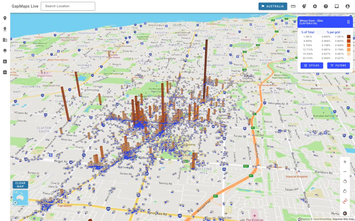 "GapMaps Live has advanced location metrics tagging to filter and visualise locations on a range of specific factors. This may include asset or store type, operating hours, seating capacity or the property value," says Newell.